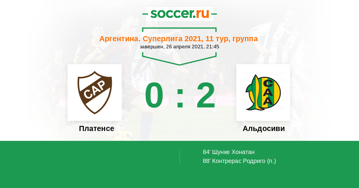 Протокол матча Платенсе против Альдосиви