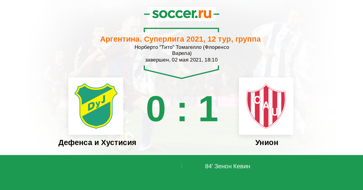 Протокол матча Дефенса и Хустисия против Унион