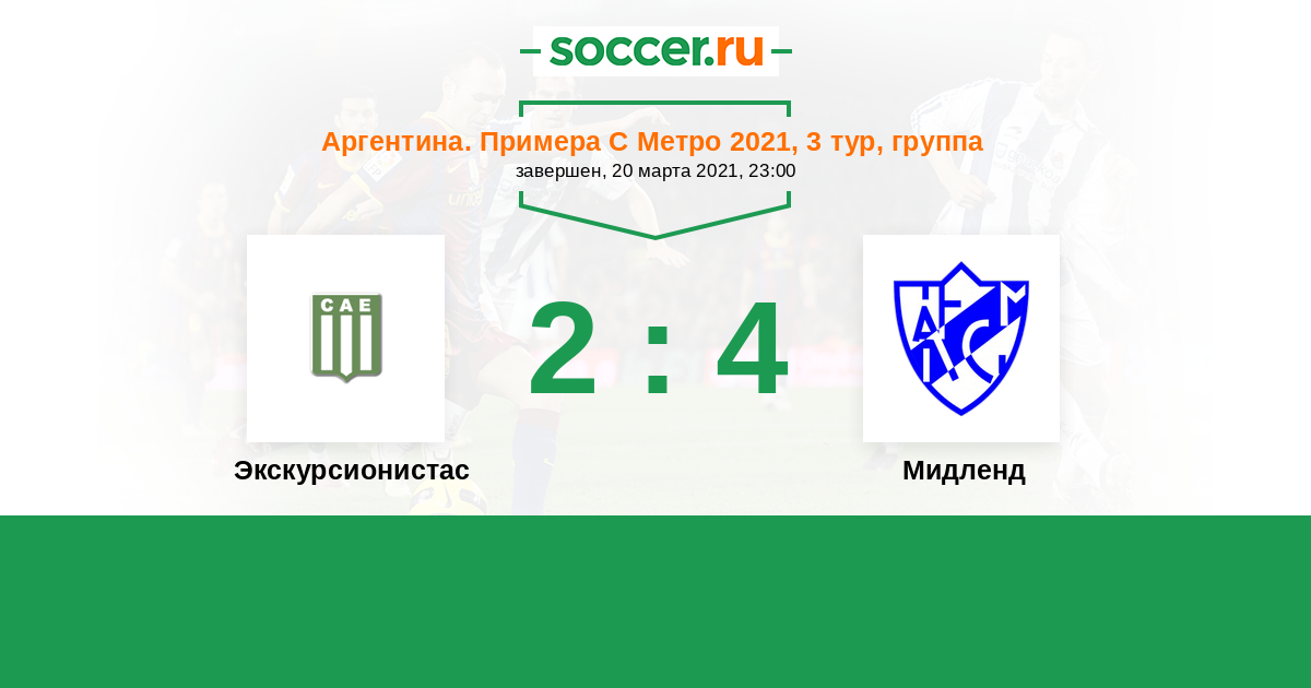 Аргентина. Примера С Метро 07.03.2022 Мидленд Логотип футбольный клуб Мидленд (Либертад) 4:0 Логотип футбольный клуб Экскурсионистас (Буэнос-Айрес) Экскурсионистас