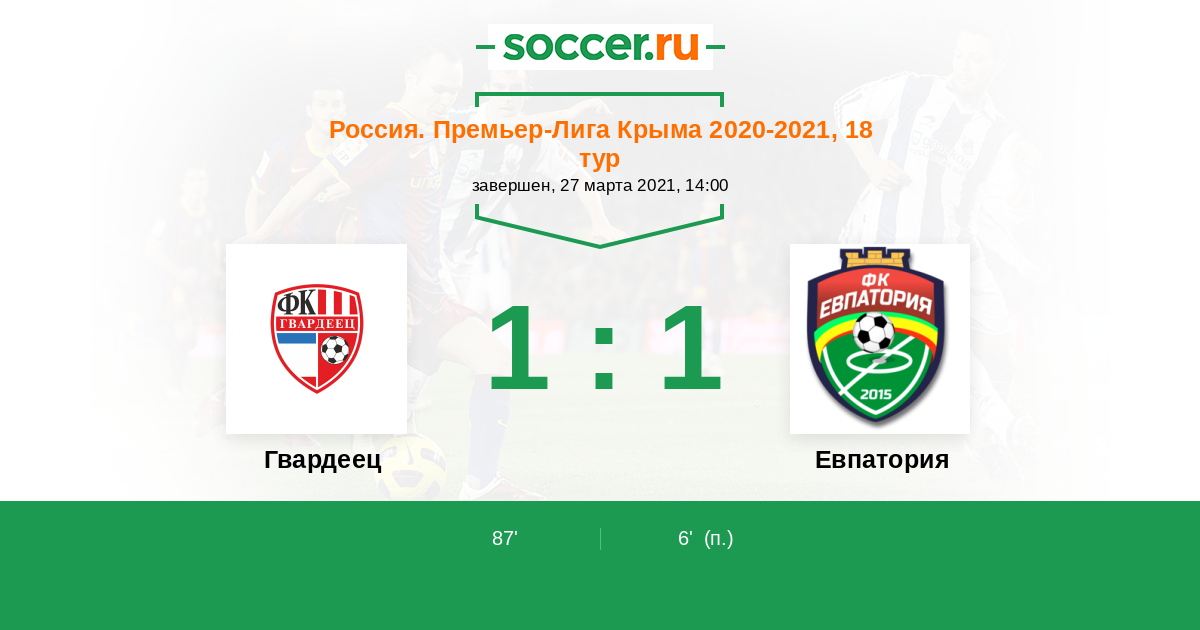 Протокол матча Гвардеец против Евпатория