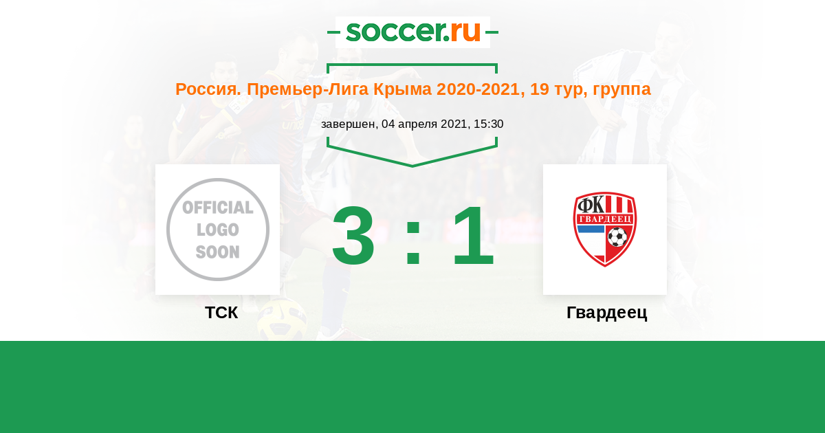 Россия. Премьер-Лига Крыма 14.04.2019 ТСК Логотип футбольный клуб ТСК (Симферополь) 2:0 Логотип футбольный клуб Гвардеец (Аграрное) Гвардеец