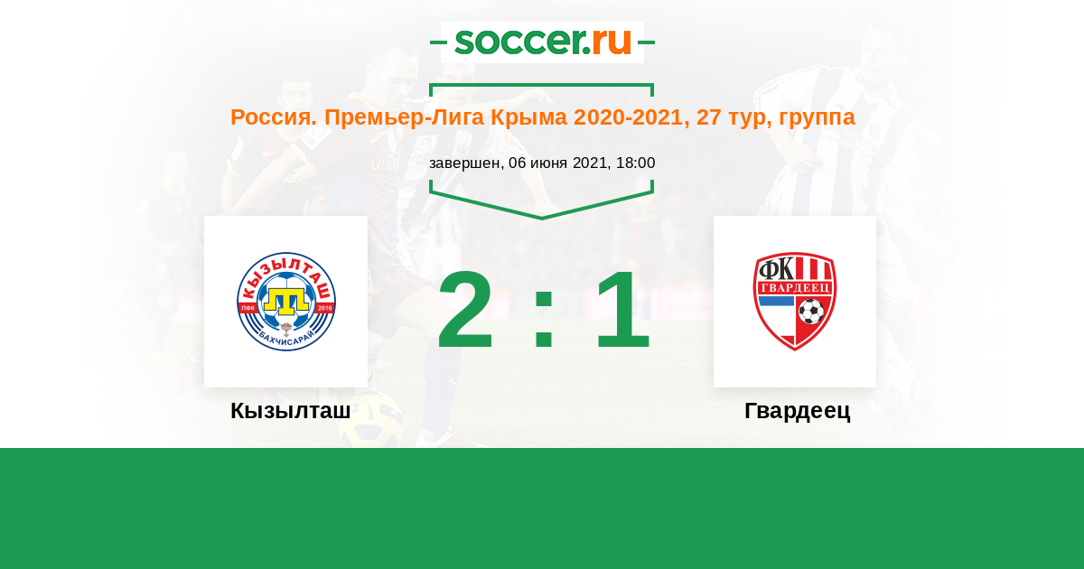 Россия. Премьер-Лига Крыма 18.04.2021 Гвардеец Логотип футбольный клуб Гвардеец (Аграрное) 1:0 Логотип футбольный клуб Кызылташ (Бахчисарай) Кызылташ