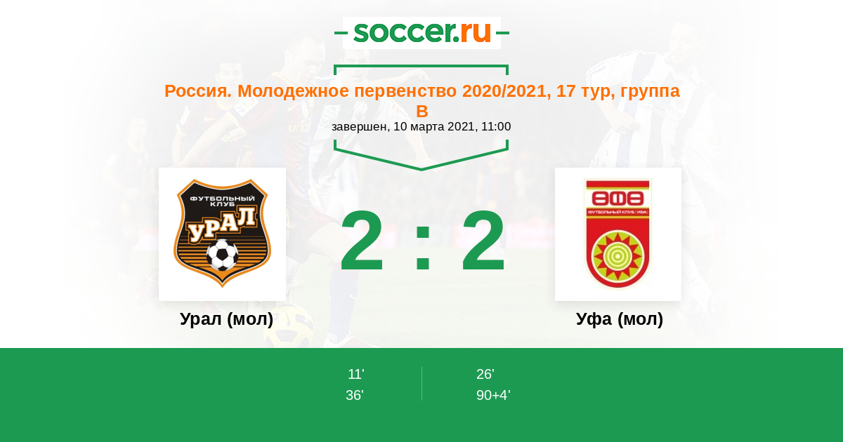Протокол матча Урал (мол) против Уфа (мол)
