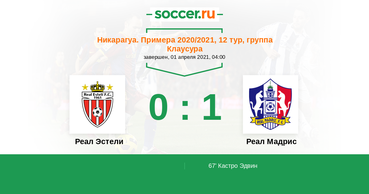 Протокол матча Реал Эстели против Реал Мадрис