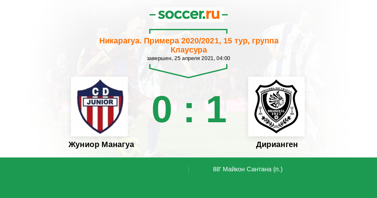 Протокол матча Жуниор Манагуа против Дирианген