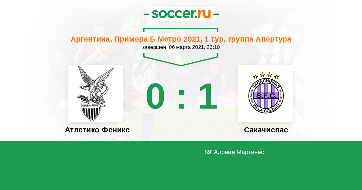 Протокол матча Атлетико Феникс против Сакачиспас