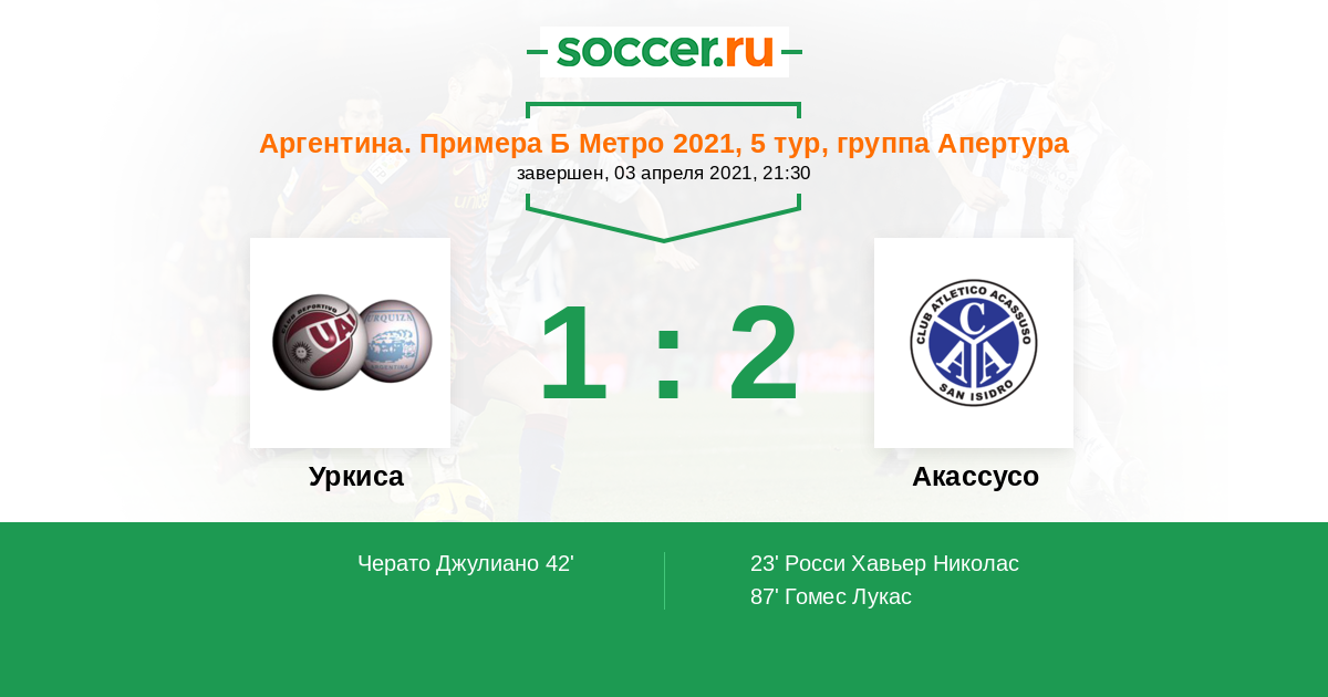 Протокол матча Уркиса против Акассусо