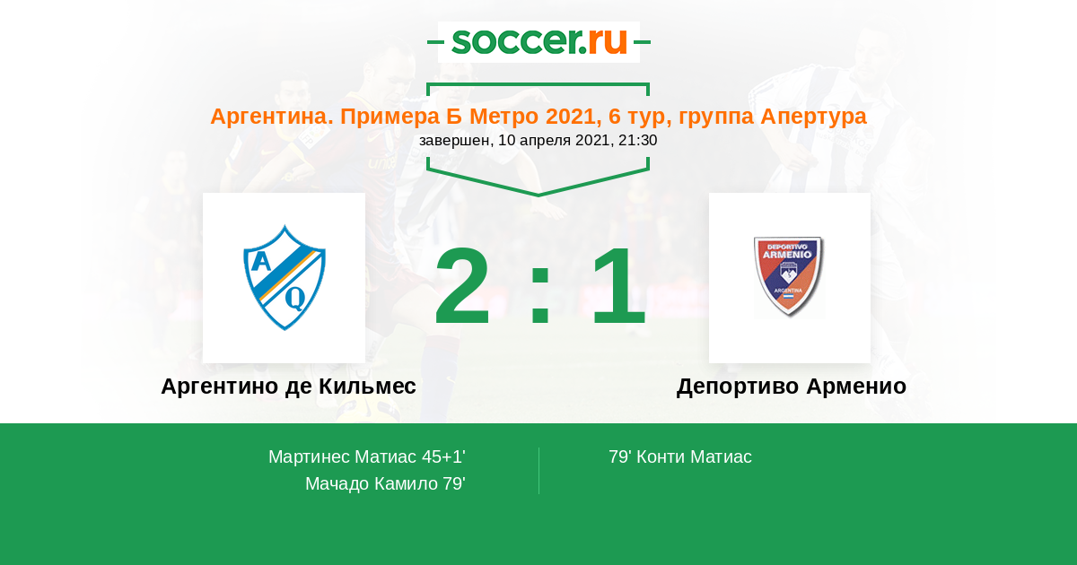 Протокол матча Аргентино де Кильмес против Депортиво Арменио