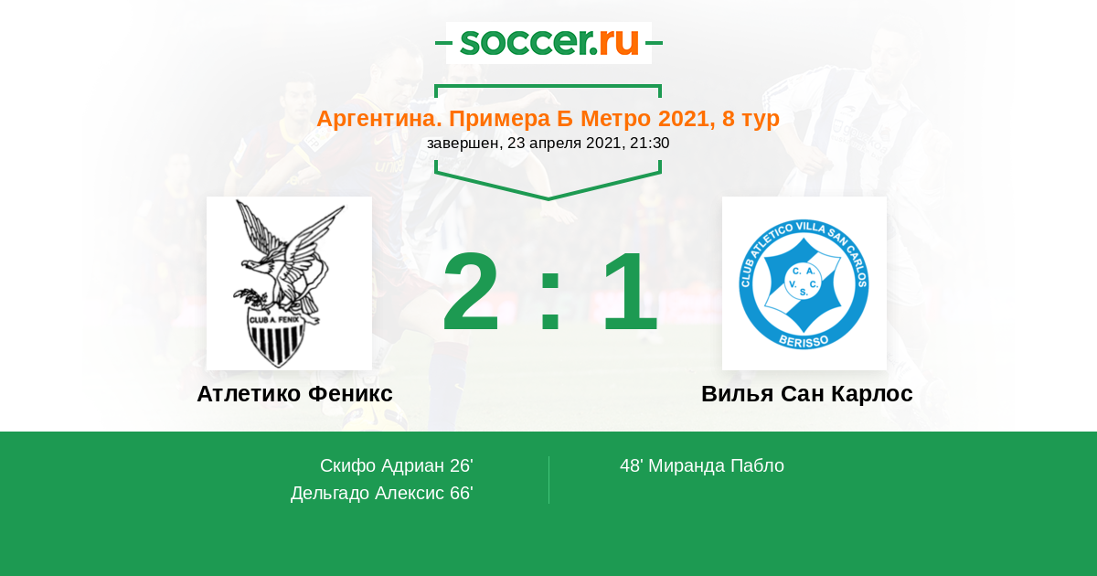 Протокол матча Атлетико Феникс против Вилья Сан Карлос