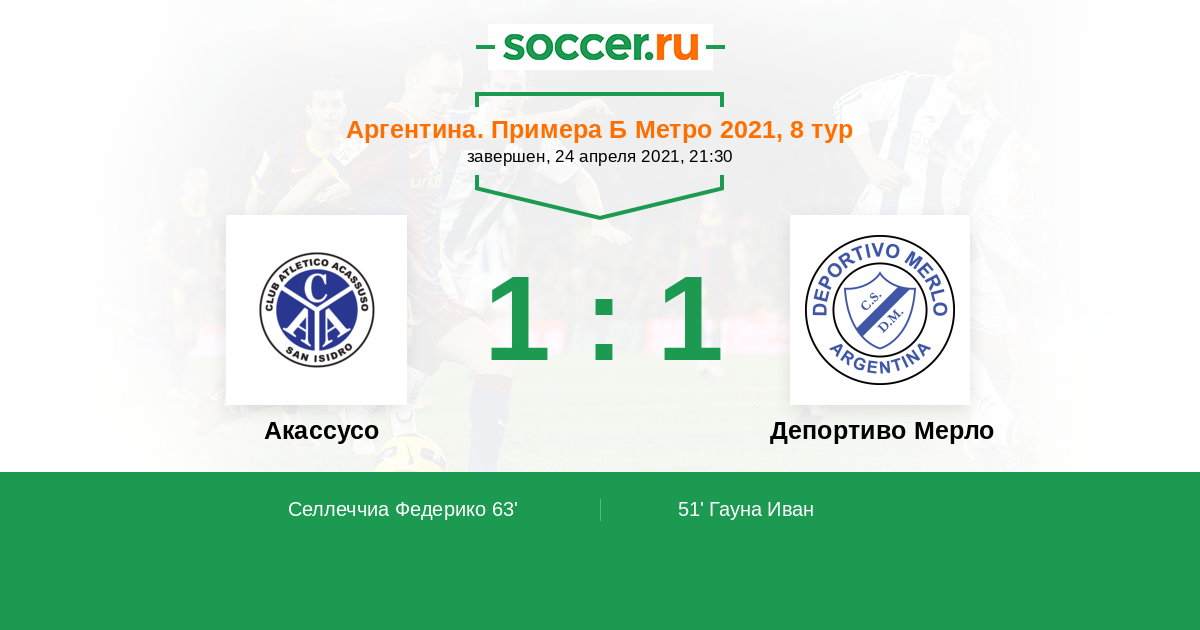 Протокол матча Акассусо против Депортиво Мерло