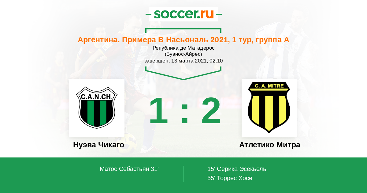 Протокол матча Нуэва Чикаго против Атлетико Митра
