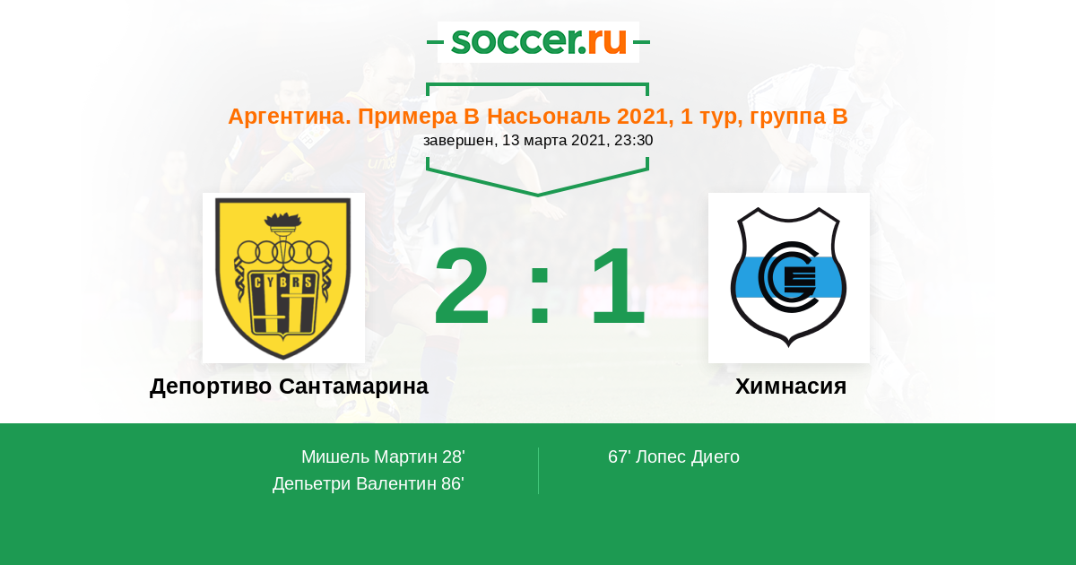 Протокол матча Депортиво Сантамарина против Химнасия