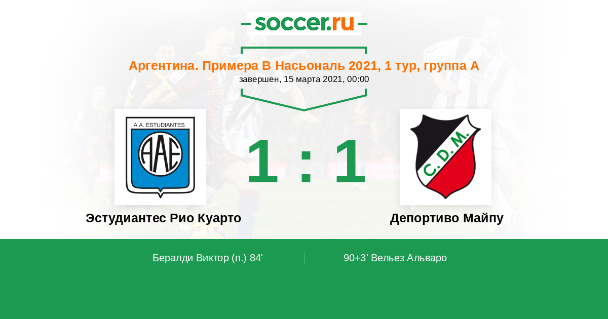 Протокол матча Эстудиантес Рио Куарто против Депортиво Майпу
