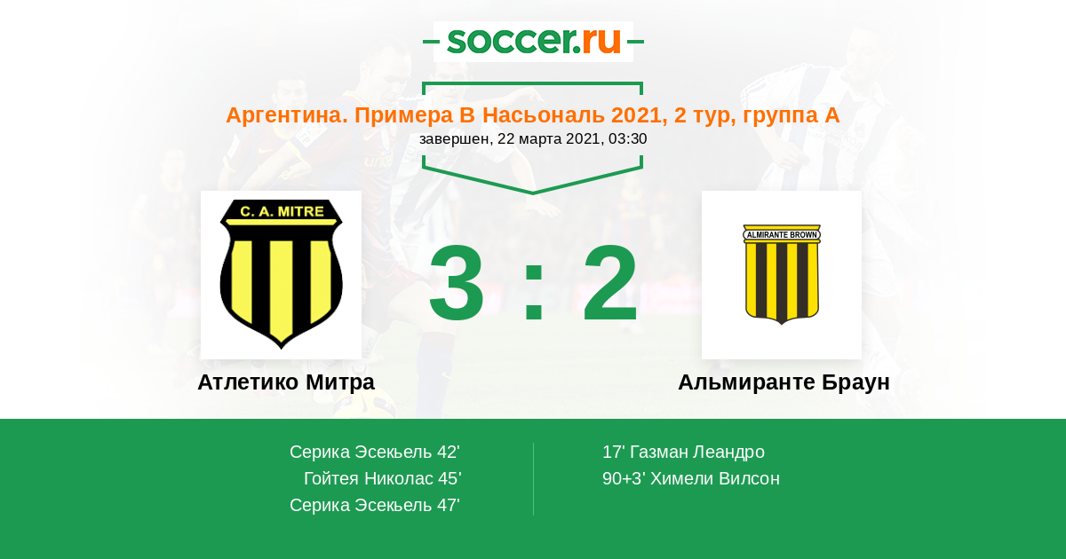 Протокол матча Атлетико Митра против Альмиранте Браун