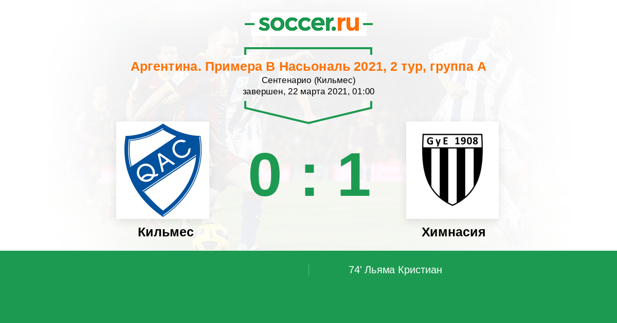 Протокол матча Кильмес против Химнасия