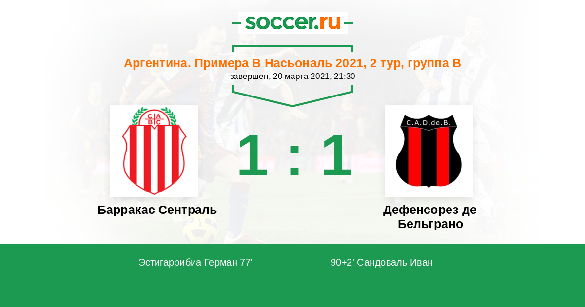 Протокол матча Барракас Сентраль против Дефенсорез де Бельграно