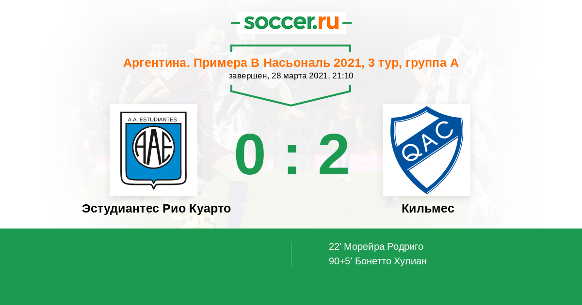 Протокол матча Эстудиантес Рио Куарто против Кильмес