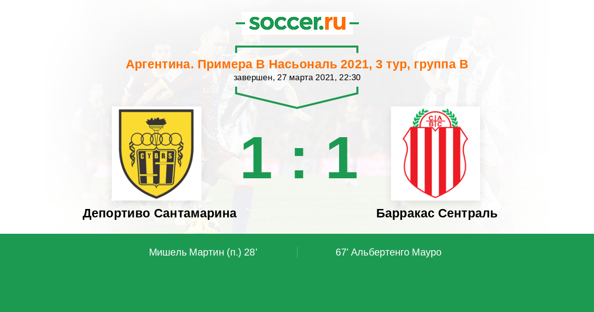 Протокол матча Депортиво Сантамарина против Барракас Сентраль