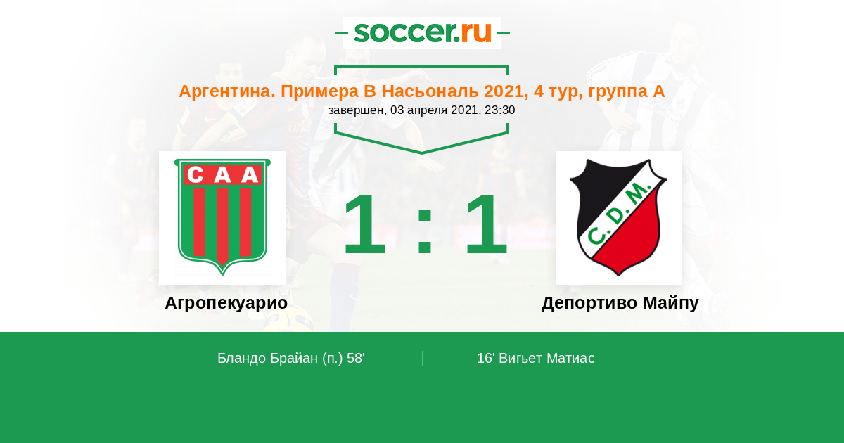 Протокол матча Агропекуарио против Депортиво Майпу