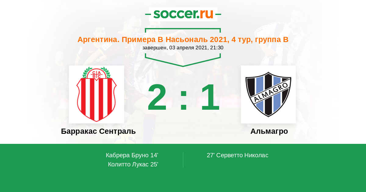 Протокол матча Барракас Сентраль против Альмагро