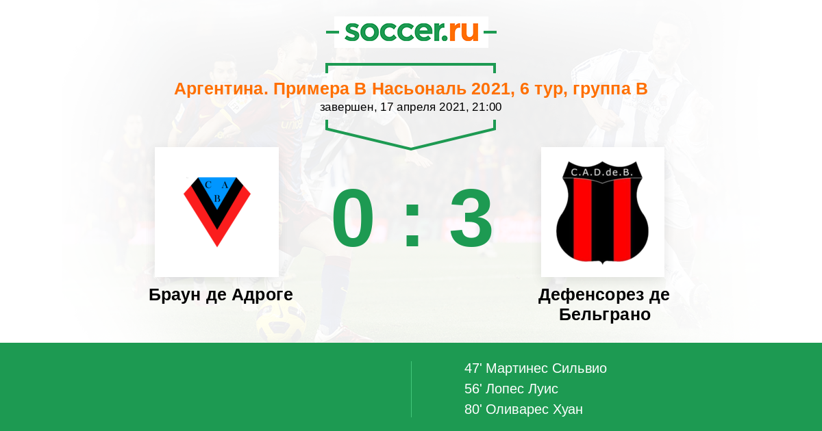 Протокол матча Браун де Адроге против Дефенсорез де Бельграно