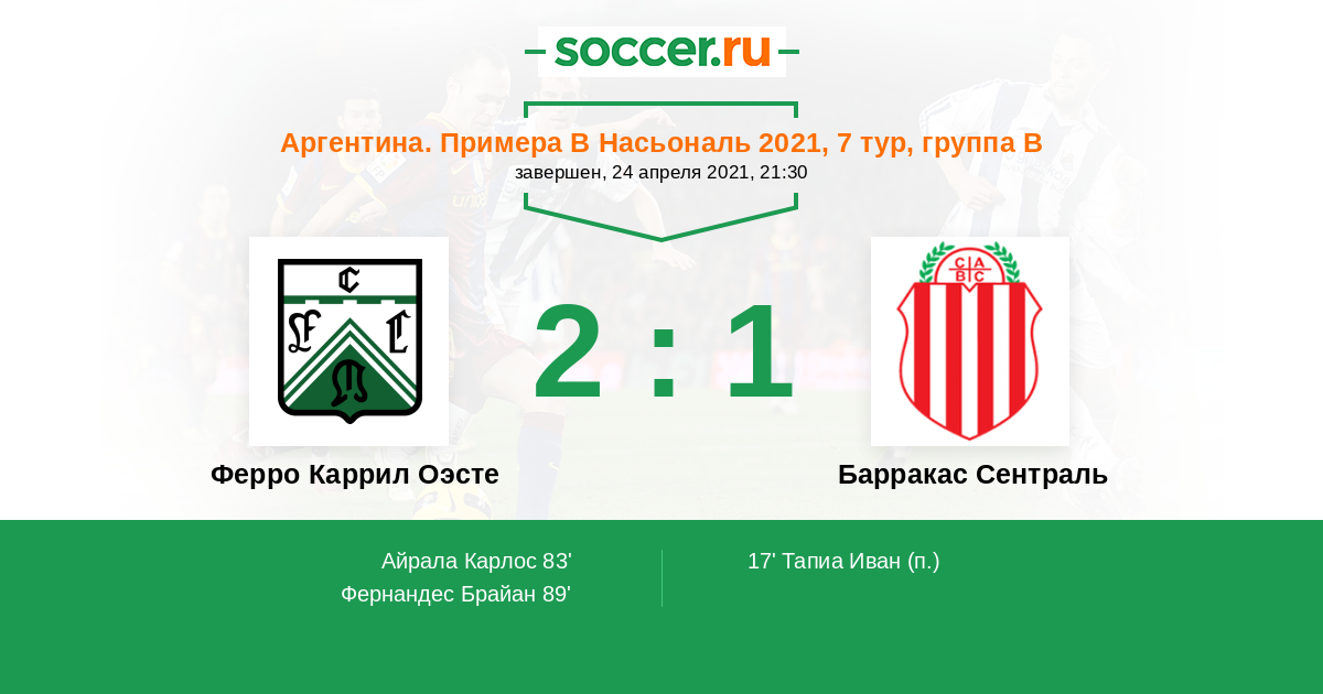 Протокол матча Ферро Каррил Оэсте против Барракас Сентраль