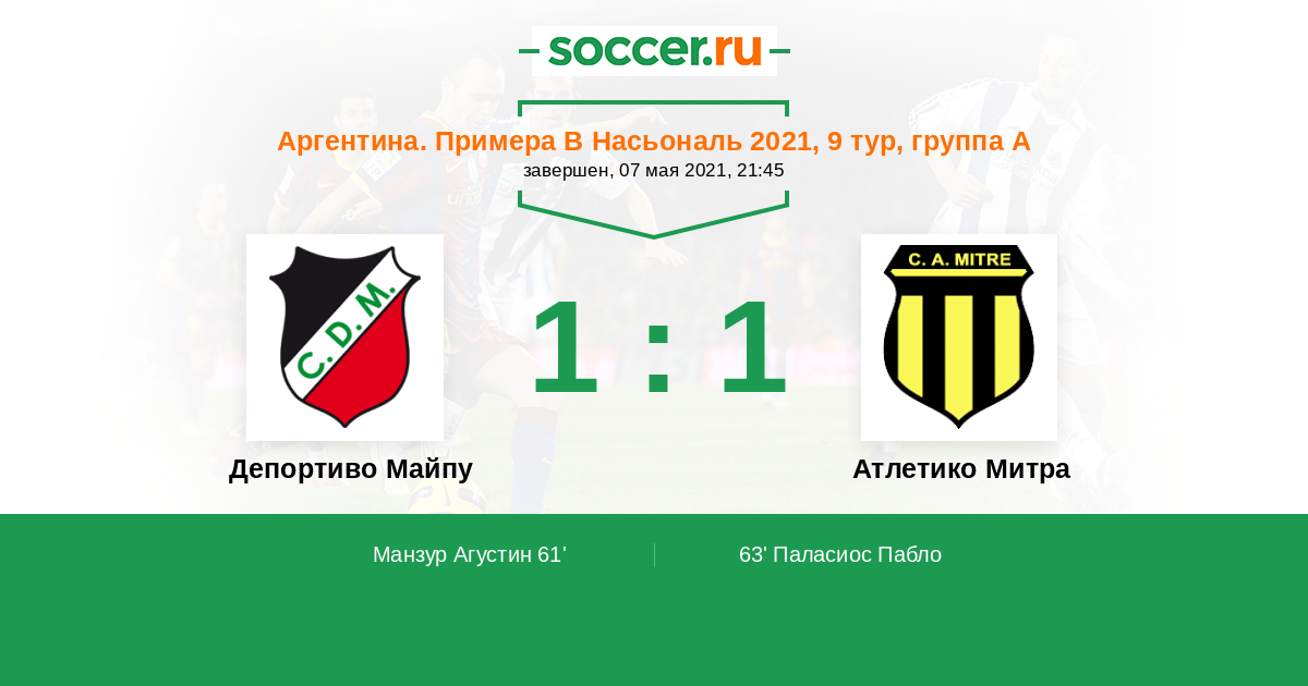 Протокол матча Депортиво Майпу против Атлетико Митра