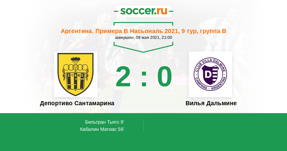 Протокол матча Депортиво Сантамарина против Вилья Дальмине