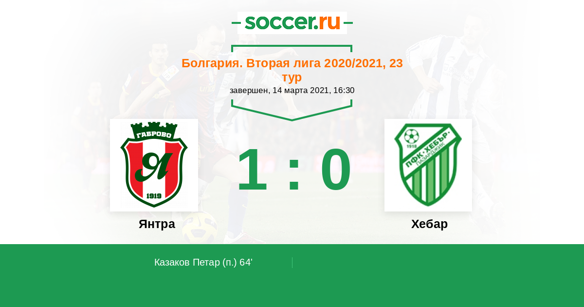 Протокол матча Янтра против Хебар