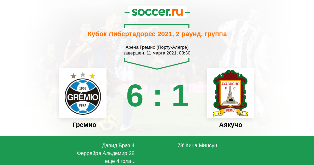 Протокол матча Гремио против Аякучо