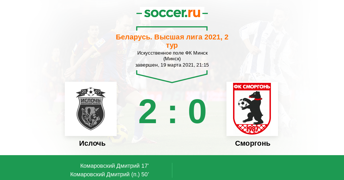 Протокол матча Ислочь против Сморгонь
