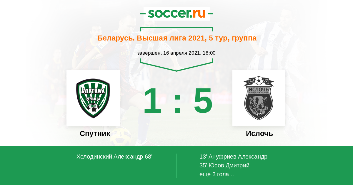 Протокол матча Спутник против Ислочь