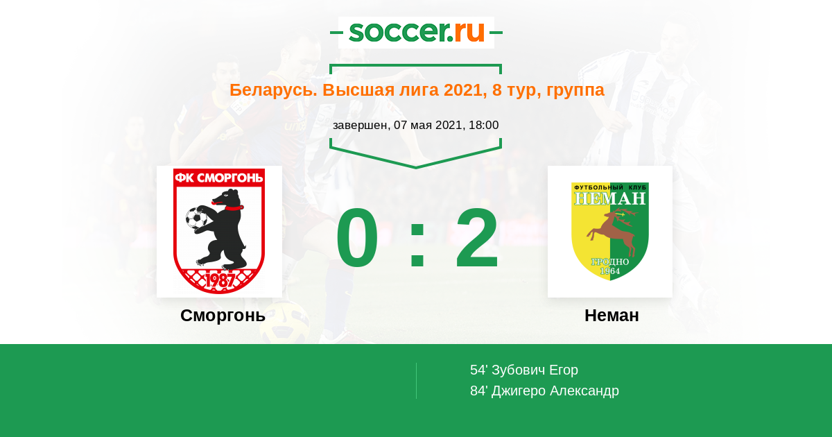 Протокол матча Сморгонь против Неман