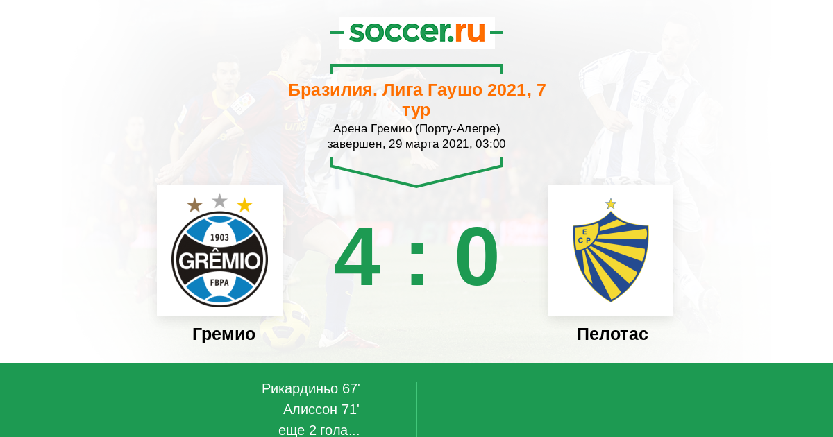 Протокол матча Гремио против Пелотас