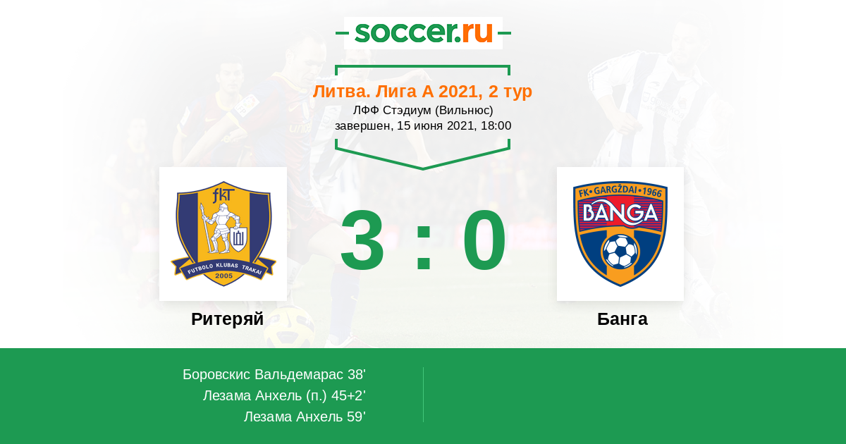 Протокол матча Ритеряй против Банга