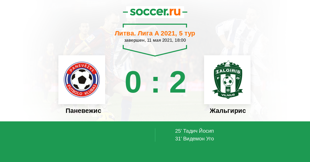 Протокол матча Паневежис против Жальгирис