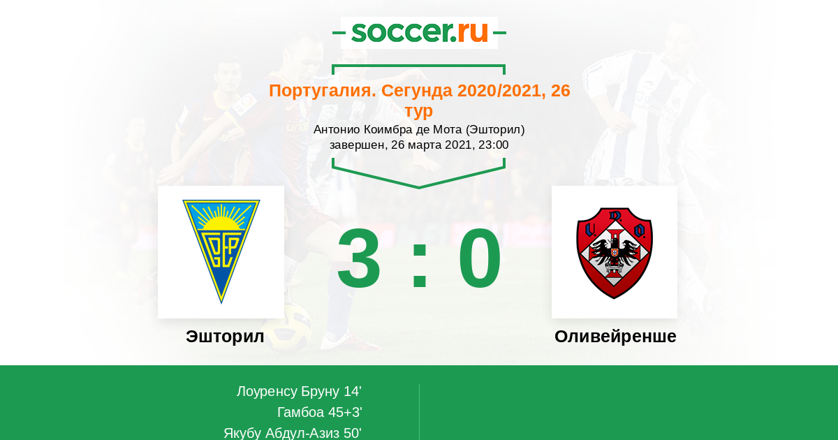 Протокол матча Эшторил против Оливейренше