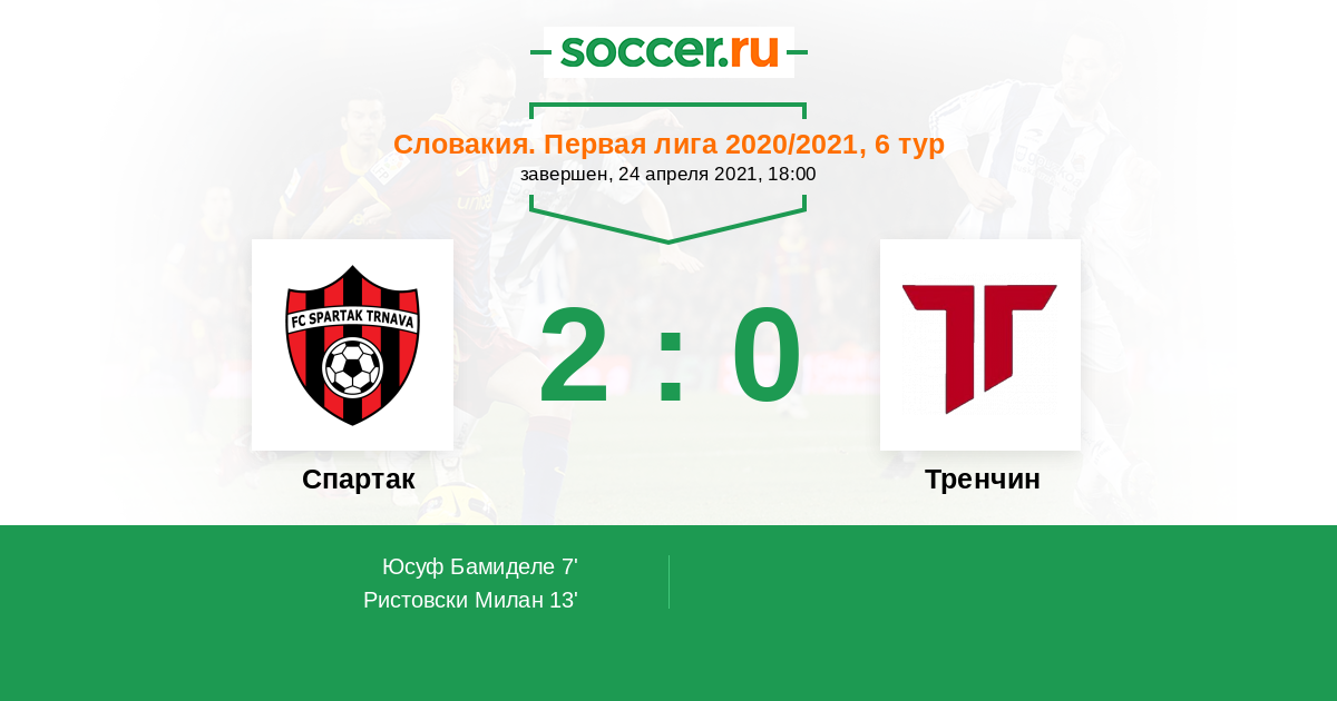 Протокол матча Спартак против Тренчин