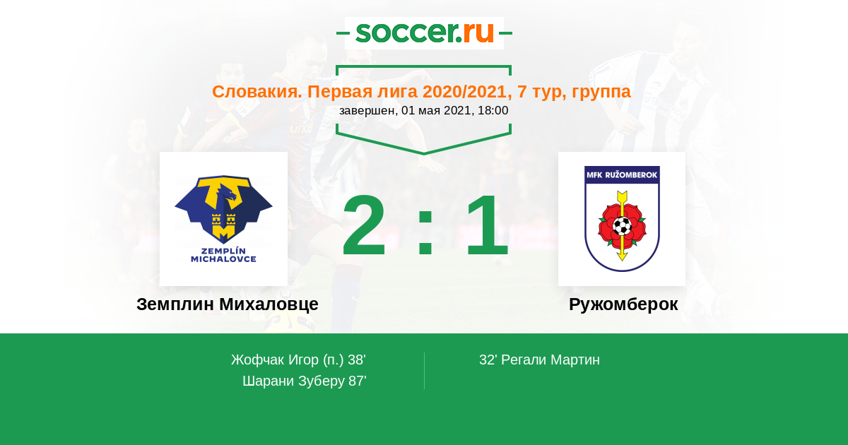 Протокол матча Земплин Михаловце против Ружомберок