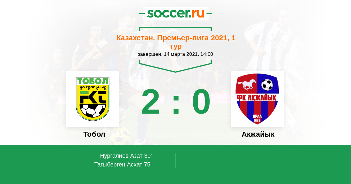 Протокол матча Тобол против Акжайык