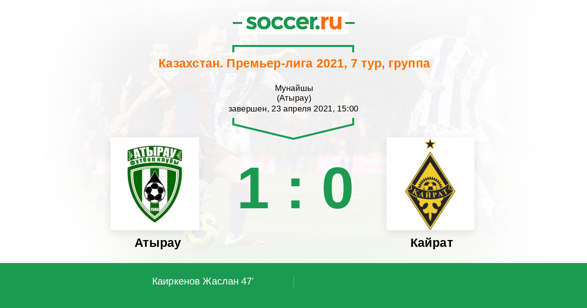 Протокол матча Атырау против Кайрат