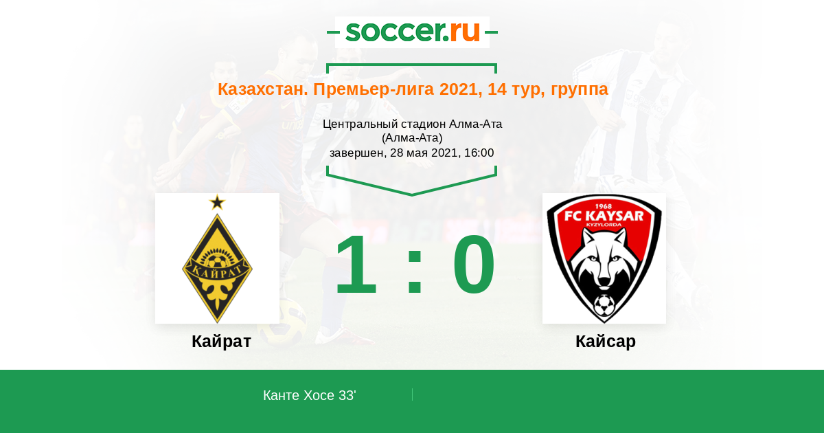 Протокол матча Кайрат против Кайсар
