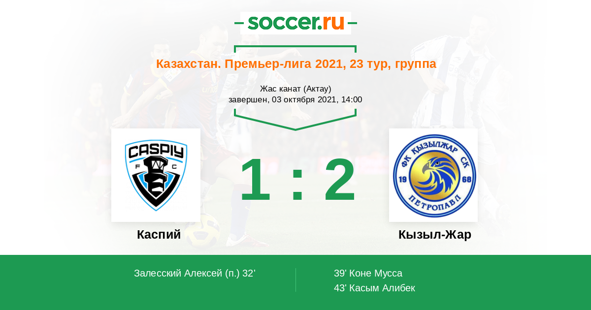 Протокол матча Каспий против Кызыл-Жар