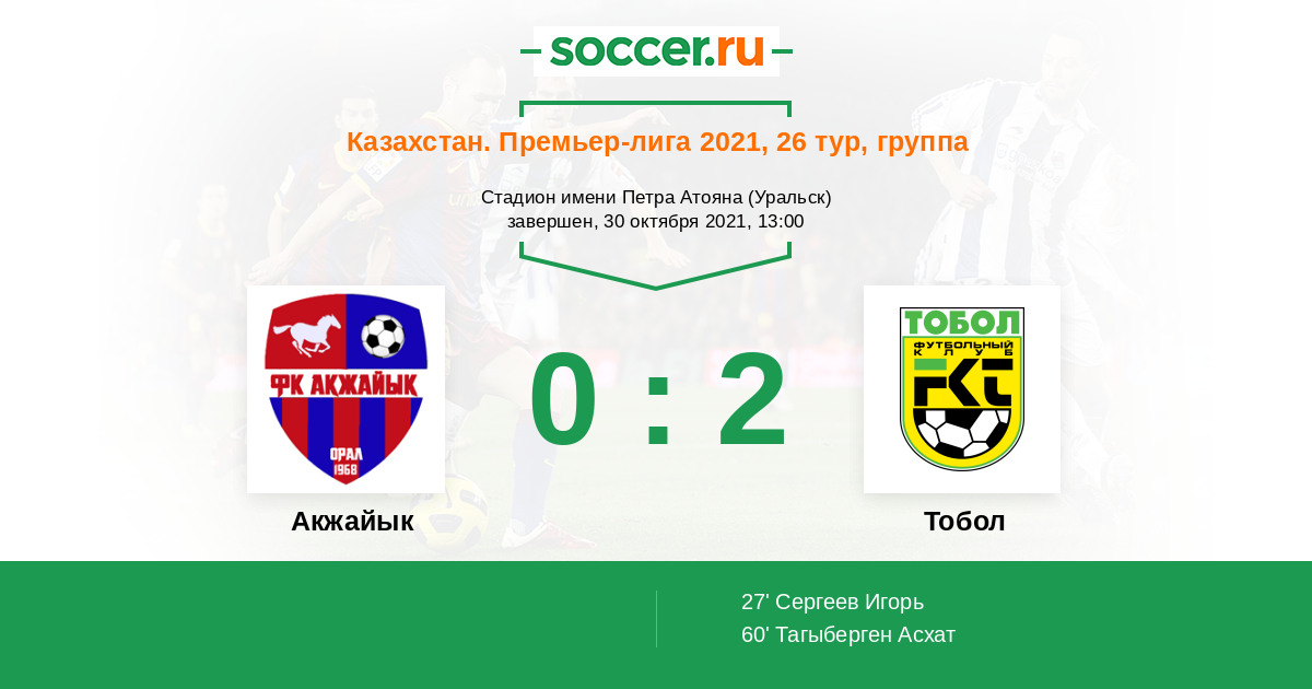 Протокол матча Акжайык против Тобол