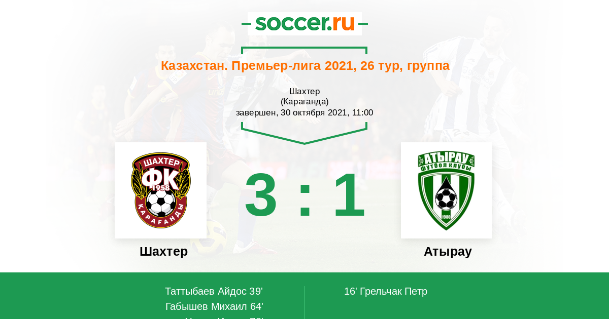 Протокол матча Шахтер против Атырау