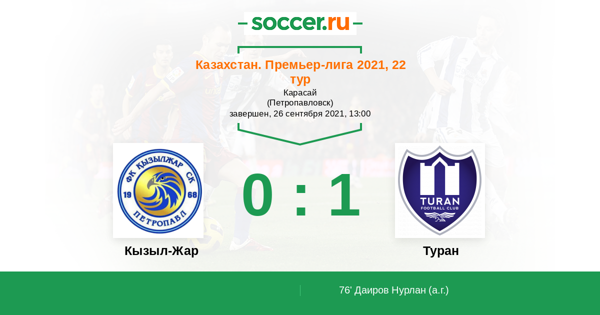 Протокол матча Кызыл-Жар против Туран