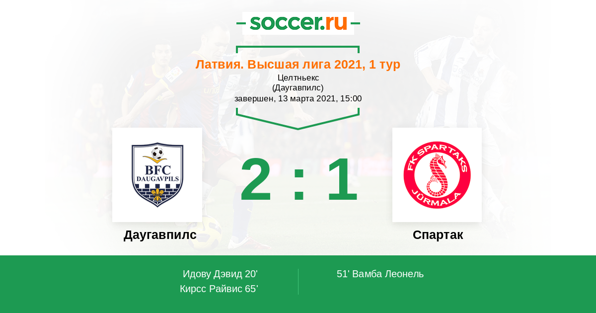 Протокол матча Даугавпилс против Спартак