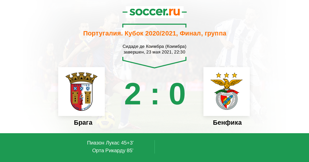 85' (2:0) Орта Рикарду (21) (Руис Абель (9))