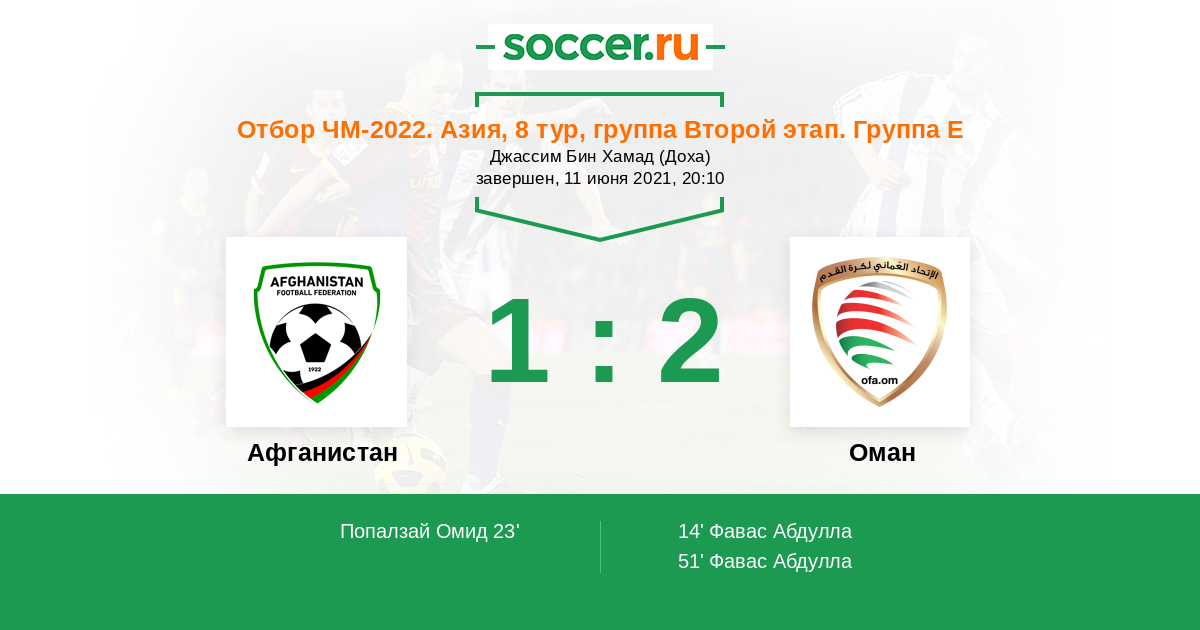 Протокол матча Афганистан против Оман