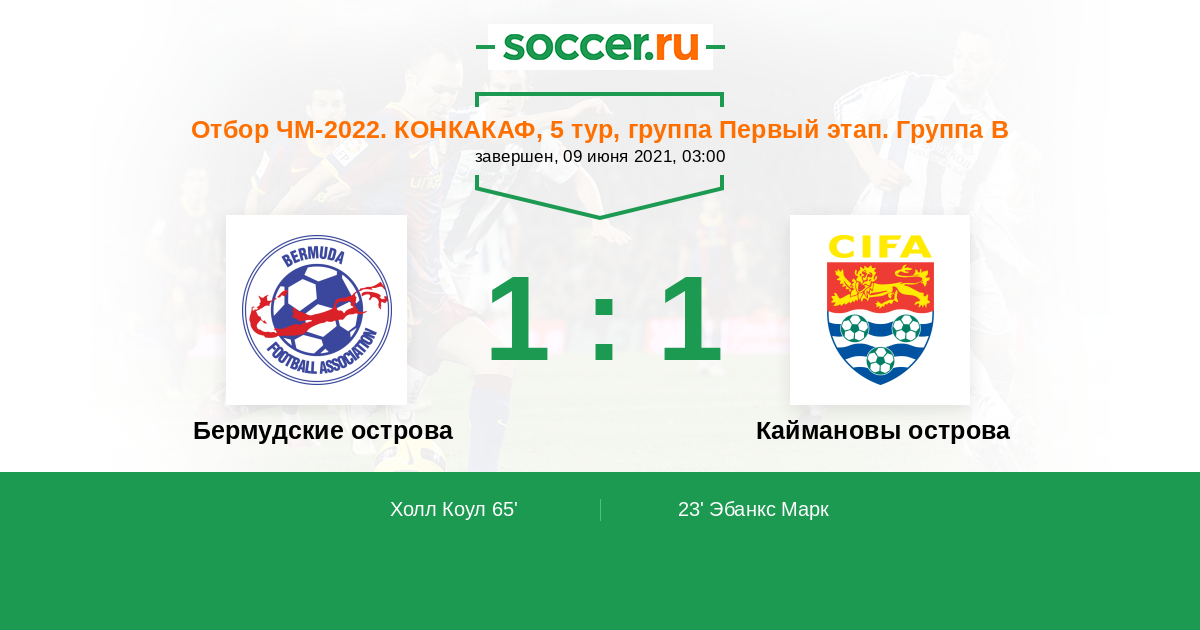 Протокол матча Бермудские острова против Каймановы острова